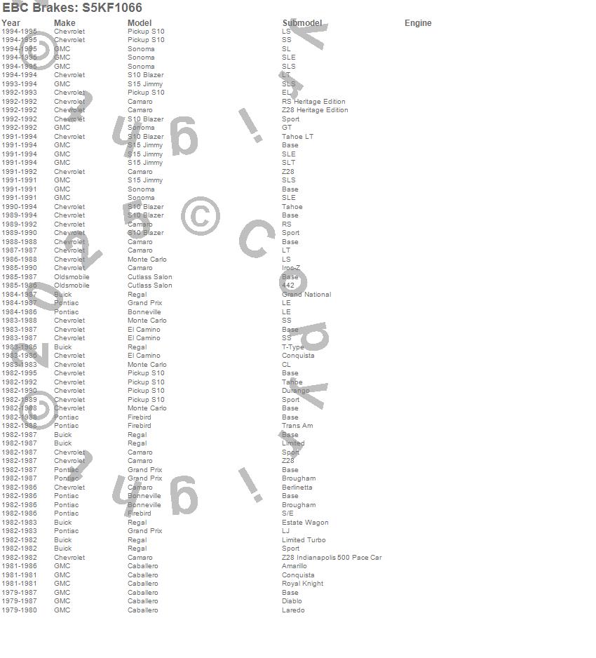 Below is an abreviated list of applications for the S5 Kits yellowstuff And GD Rotors.