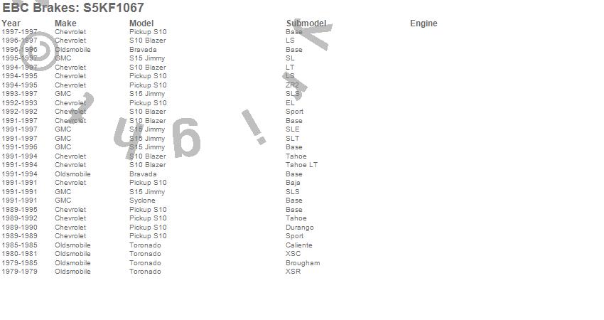 Below is an abreviated list of applications for the S5 Kits yellowstuff And GD Rotors.