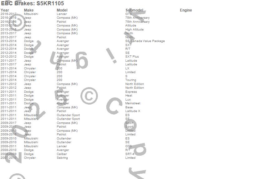 Below is an abreviated list of applications for the S5 Kits yellowstuff And GD Rotors.