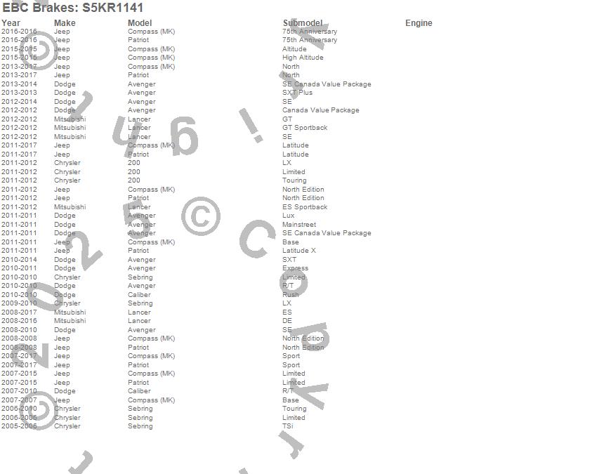 Below is an abreviated list of applications for the S5 Kits yellowstuff And GD Rotors.