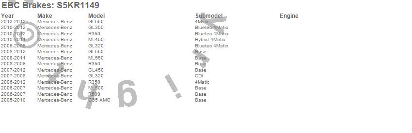 Below is an abreviated list of applications for the S5 Kits yellowstuff And GD Rotors.
