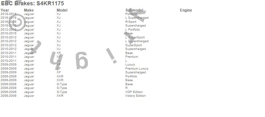 Below is an abreviated list of applications for the S4 Kits Redstuff and USR rotor.