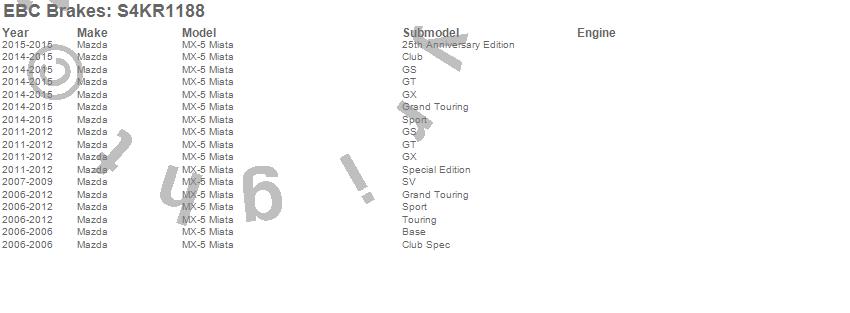 Below is an abreviated list of applications for the S4 Kits Redstuff and USR rotor.