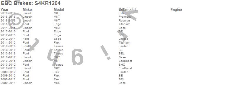 Below is an abreviated list of applications for the S4 Kits Redstuff and USR rotor.