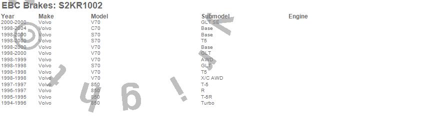 Below is an abreviated list of applications for the S2 Kits Greentuff 2000 and USR Rotors.