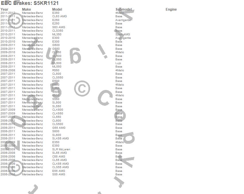 Below is an abreviated list of applications for the S5 Kits yellowstuff And GD Rotors.