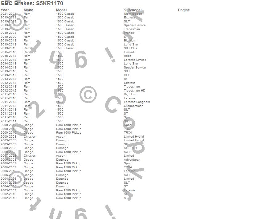 Below is an abreviated list of applications for the S5 Kits yellowstuff And GD Rotors.