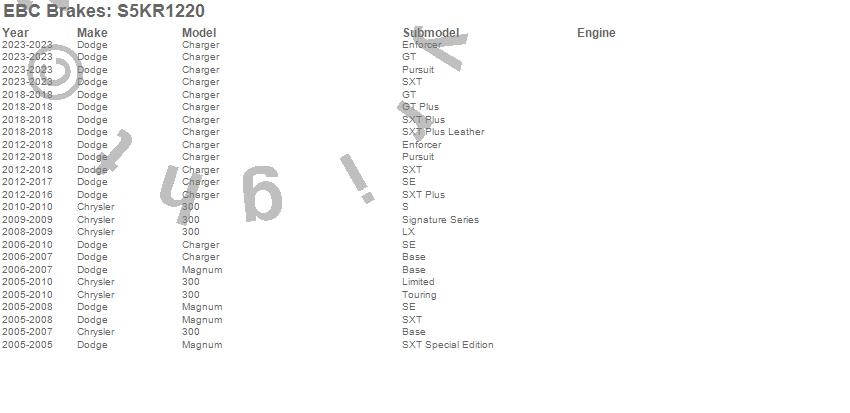 Below is an abreviated list of applications for the S5 Kits yellowstuff And GD Rotors.