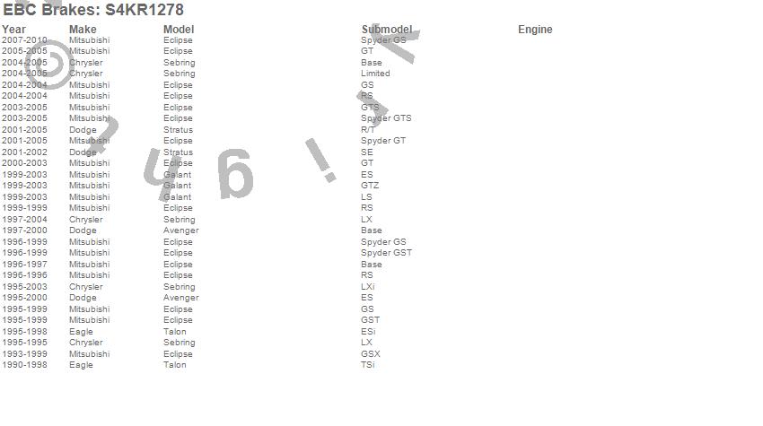 Below is an abreviated list of applications for the S4 Kits Redstuff and USR rotor.