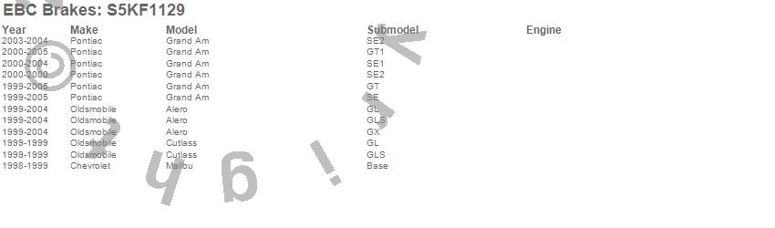 Below is an abreviated list of applications for the S5 Kits yellowstuff And GD Rotors.