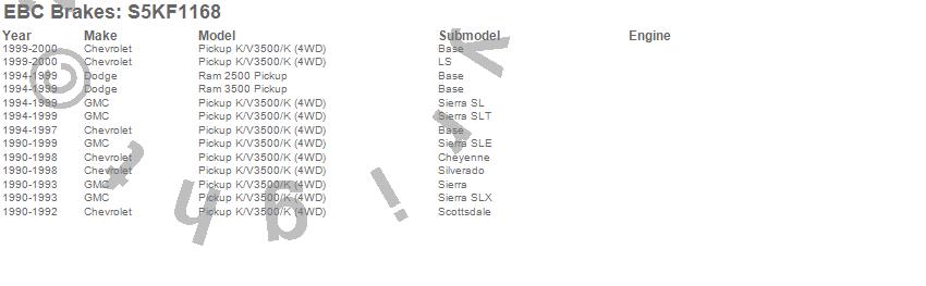 Below is an abreviated list of applications for the S5 Kits yellowstuff And GD Rotors.