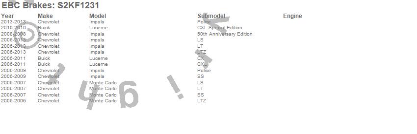 Below is an abreviated list of applications for the S2 Kits Greentuff 2000 and USR Rotors.