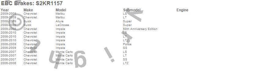 Below is an abreviated list of applications for the S2 Kits Greentuff 2000 and USR Rotors.