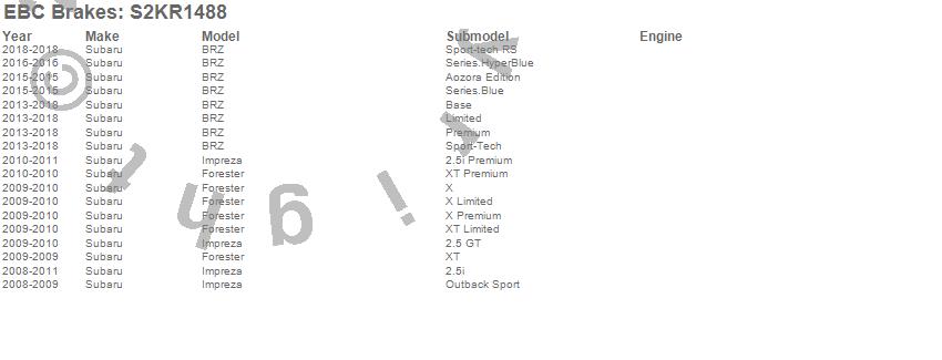 Below is an abreviated list of applications for the S2 Kits Greentuff 2000 and USR Rotors.