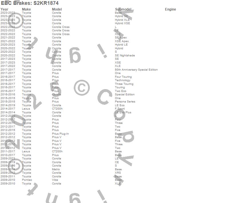 Below is an abreviated list of applications for the S2 Kits Greentuff 2000 and USR Rotors.