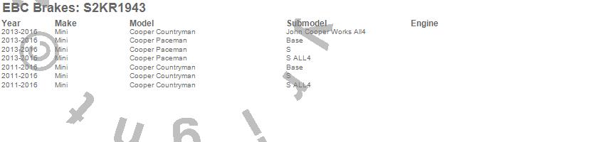 Below is an abreviated list of applications for the S2 Kits Greentuff 2000 and USR Rotors.