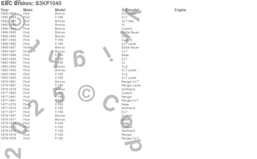 Below is an abreviated list of applications for the S3 Kits Greenstuff 6000 and GD Rotors Truck and SUV.