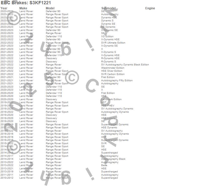 Below is an abreviated list of applications for the S3 Kits Greenstuff 6000 and GD Rotors Truck and SUV.