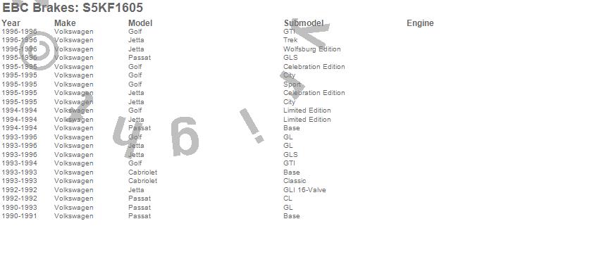 Below is an abreviated list of applications for the S5 Kits yellowstuff And GD Rotors.