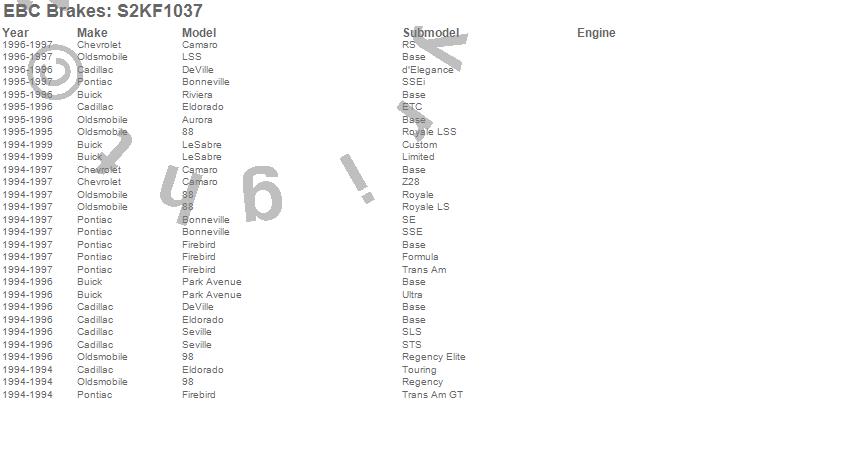 Below is an abreviated list of applications for the S2 Kits Greentuff 2000 and USR Rotors.