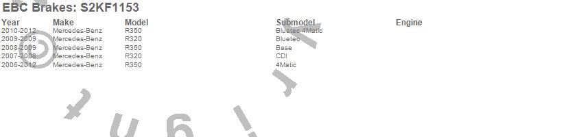 Below is an abreviated list of applications for the S2 Kits Greentuff 2000 and USR Rotors.