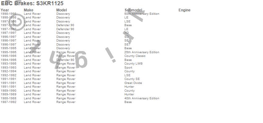 Below is an abreviated list of applications for the S3 Kits Greenstuff 6000 and GD Rotors Truck and SUV.