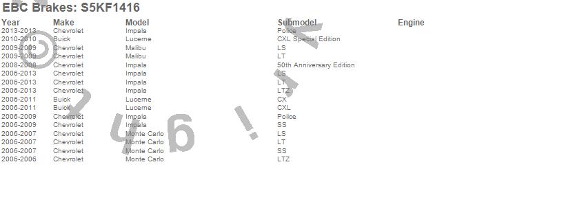 Below is an abreviated list of applications for the S5 Kits yellowstuff And GD Rotors.