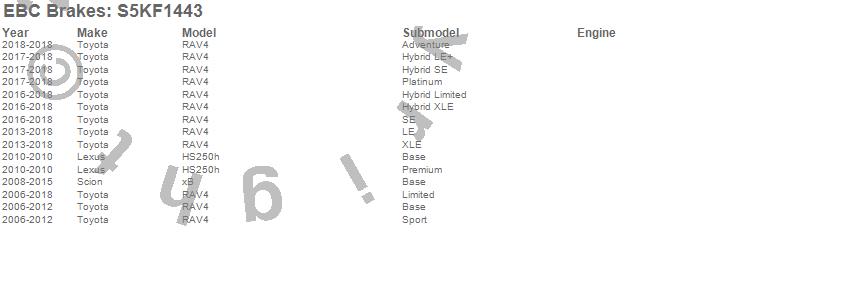Below is an abreviated list of applications for the S5 Kits yellowstuff And GD Rotors.