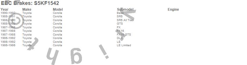 Below is an abreviated list of applications for the S5 Kits yellowstuff And GD Rotors.
