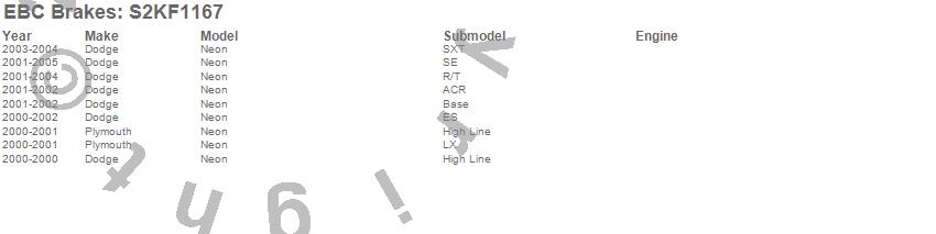 Below is an abreviated list of applications for the S2 Kits Greentuff 2000 and USR Rotors.