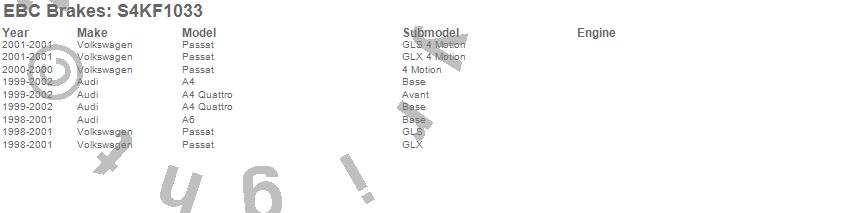 Below is an abreviated list of applications for the S4 Kits Redstuff and USR rotor.