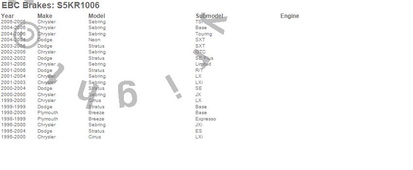 Below is an abreviated list of applications for the S5 Kits yellowstuff And GD Rotors.