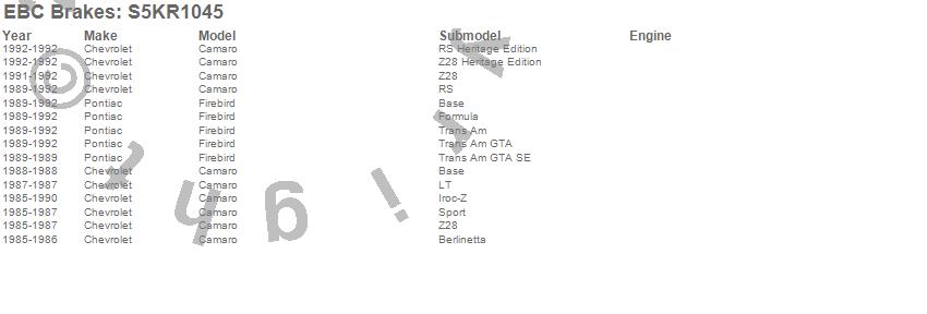 Below is an abreviated list of applications for the S5 Kits yellowstuff And GD Rotors.
