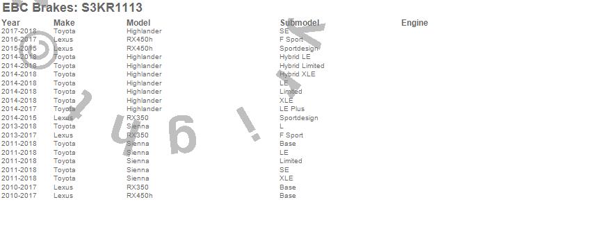Below is an abreviated list of applications for the S3 Kits Greenstuff 6000 and GD Rotors Truck and SUV.