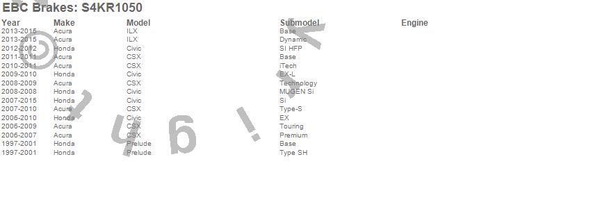 Below is an abreviated list of applications for the S4 Kits Redstuff and USR rotor.