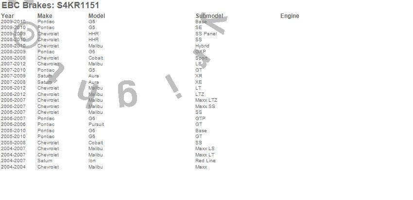 Below is an abreviated list of applications for the S4 Kits Redstuff and USR rotor.