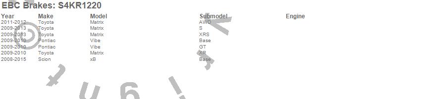 Below is an abreviated list of applications for the S4 Kits Redstuff and USR rotor.