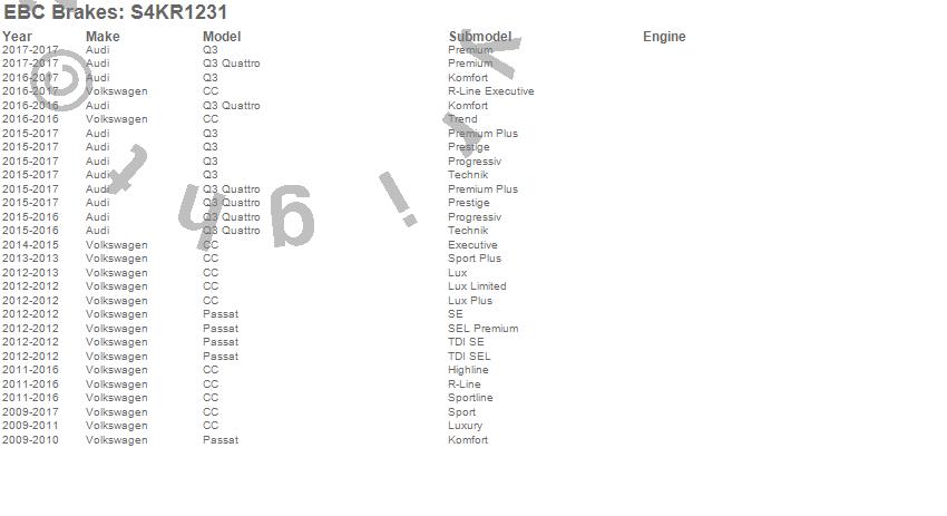 Below is an abreviated list of applications for the S4 Kits Redstuff and USR rotor.