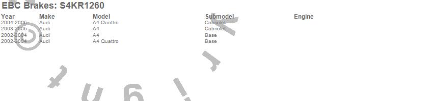 Below is an abreviated list of applications for the S4 Kits Redstuff and USR rotor.