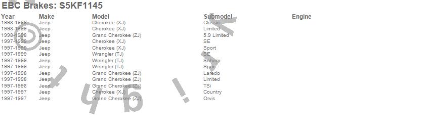 Below is an abreviated list of applications for the S5 Kits yellowstuff And GD Rotors.