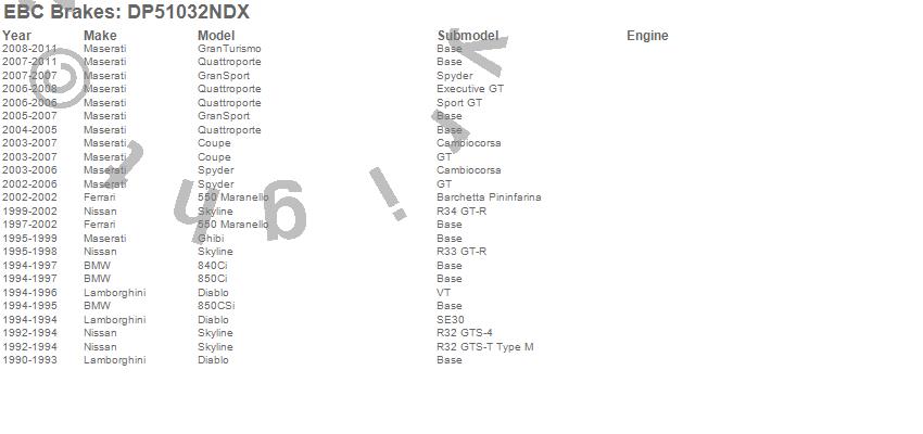 Below is an abreviated list of applications for the EBC Bluestuff NDX Full Race Brake Pads.