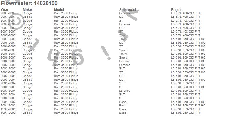 Below is an abreviated list of applications for the Pro Series Muffler.